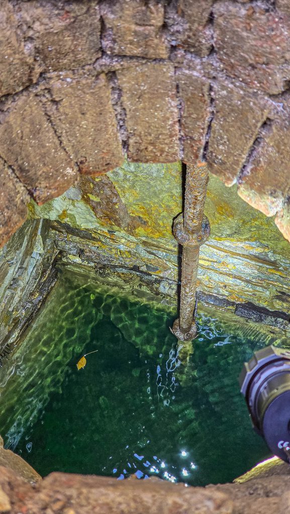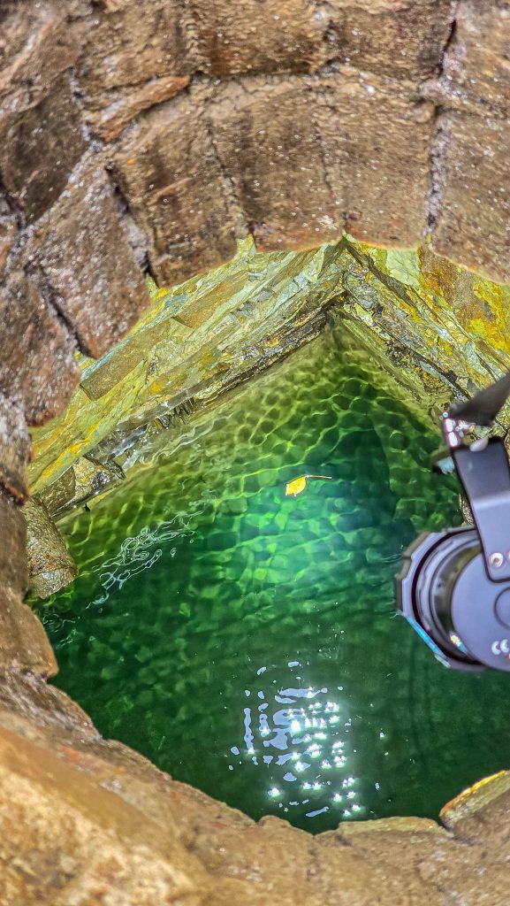 Da die Öffnung an der Firste des Gewölbes nur 40cm im Durchmesser misst, ist eine fotografische Dokumentation des Brunnens nur erschwert möglich. Trotzdem gibt es hier im Video ein paar Bilder und Videosequenzen aus dem Inneren. Viel Spaß!